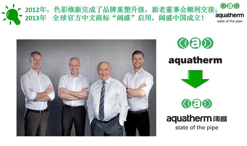 德國闊盛已進入中國18年,一直領跑于中國PP-R管道系統(tǒng)高端市場,并受到中國消費者的喜愛!針對日益重要的中國市場,德國闊盛從2013年7月1日起,正式啟用官方持有的中文標識“闊盛”用于中國市場推廣。推廣標識升級為中英文結合商標 。2013年7月1日起,闊盛管道系統(tǒng)(上海)有限公司為德國闊盛在中國地區(qū)的總代理, 將秉承德國闊盛的價值觀和愿景!