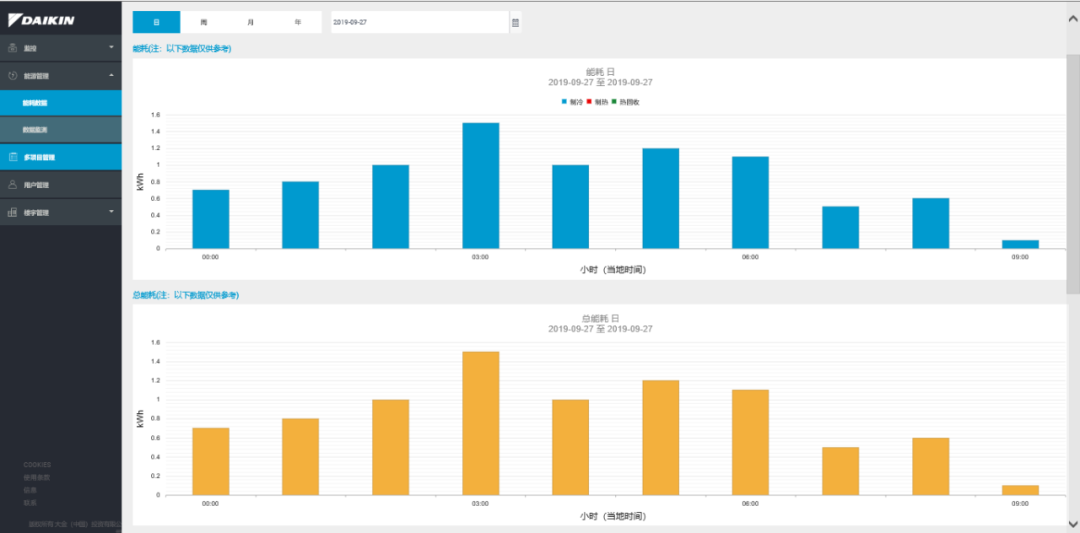 通過能源管理界面,能清晰地看到空調(diào)實(shí)際使用的能耗情況;并且大金會(huì)提供詳細(xì)的運(yùn)轉(zhuǎn)報(bào)告書*1及使用情況分析,幫助管理者更好地制定空調(diào)的使用規(guī)范。