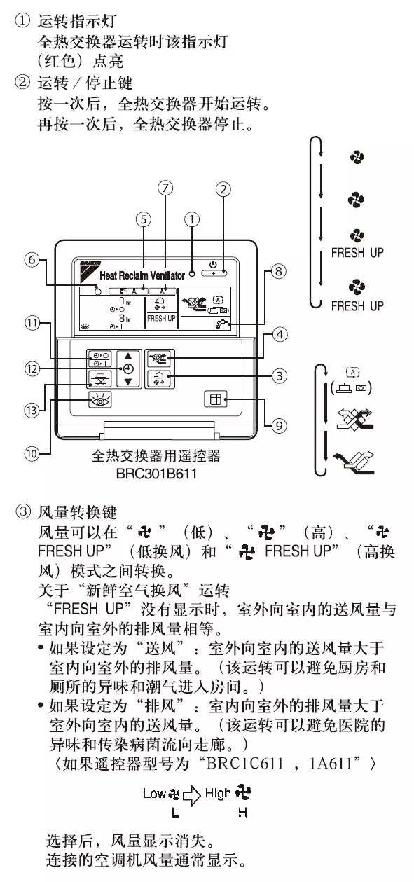 根據(jù)以上的指導意見,在疫情期間應盡量增大房間的新風引入,所以在使用全熱交換器時,可以通過【風量調節(jié)】鍵,切換出【FRESH UP】模式,此時送入房間的新風量大于排風量,不僅增加新風引入,還可以避免廚房衛(wèi)生間異味和潮氣進入室內。
