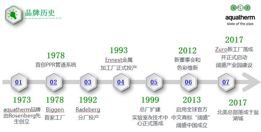 德國闊盛是充滿活力的跨國公司,主要生產(chǎn)用于供水和供熱/制冷系統(tǒng)的塑料管材及配件。該公司成立于1973年,成立之初主要從事地板輻射采暖系統(tǒng)的開發(fā)、生產(chǎn)及安裝,距今已有40余年管道生產(chǎn)經(jīng)驗。